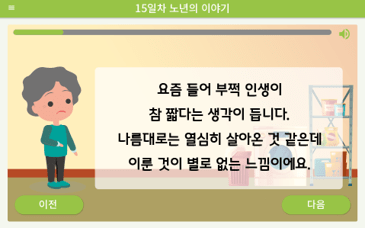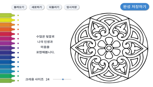 SMiLE 앱 활동 글쓴이skykim0012020년 7월 24일게시됨:미분류 색으로 표현하기 만다라 채우기 나에게 편지쓰기 노년기의 고민 들어보기 이 글 공유하기: X에 공유 (새 창에서 열림) X Facebook으로 공유하기 (새 창에서 열림) Facebook 좋아하기 가져오는 중... 관련